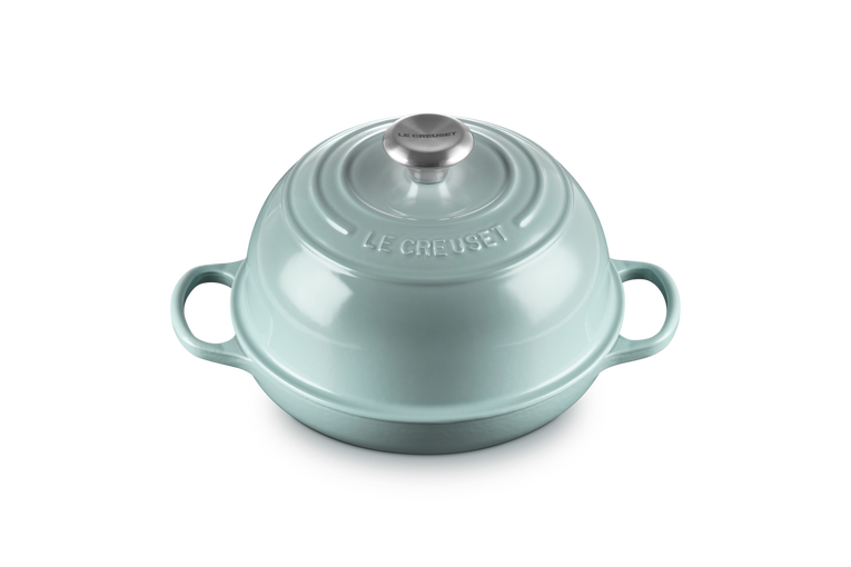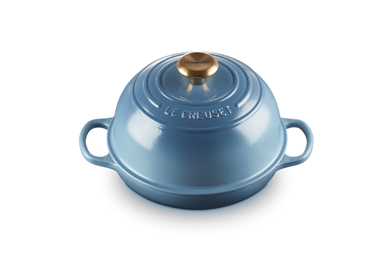 Making the perfect loaf of bread at home has never been easier. Crafted from our legendary cast iron for superior heat distribution, the purpose-built Bread Oven is designed to produce bakery-quality results. A domed lid traps and circulates steam for maximum rise and ultimate flavour, while the low-profile base promotes even browning and produces a golden, crispy crust marked with our hallmark three rings. With a matte black interior enamel and ergonomic knobs and handles, the Le Creuset Bread Oven makes it effortless to bake like the experts at home.