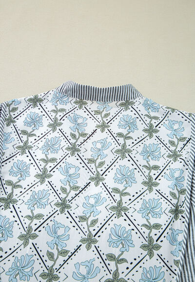 Tied Floral Printed Striped Long Sleeve Dress